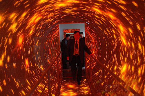 當(dāng)人沿通道橋步入隧道內(nèi),眼睛盯著旋轉(zhuǎn)的隧道內(nèi)容,人的行動是受大腦指揮的,而大腦將接受下列信息才能發(fā)出指令:前庭覺將感受人體平衡信息(垂直或傾斜);視覺將感受人處地 ……