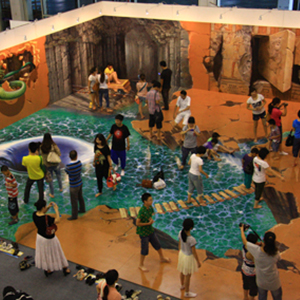 地面互動投影系統(tǒng)采用懸掛在頂部的投影設(shè)備把影像效果投射到地面,當(dāng)參訪者走至投影區(qū)域時,通過系統(tǒng)識別,參訪者可以直接使用雙腳或動作與投影幕上的虛擬場景進(jìn)行交互,各種 ……